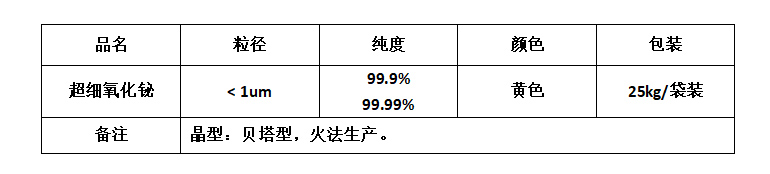 公司主要产品有:高纯氧化铋,超细氧化铋,高纯铋粉,超细铋粉,铋珠、铋针、氯氧化铋、氢氧化铋等铋产品